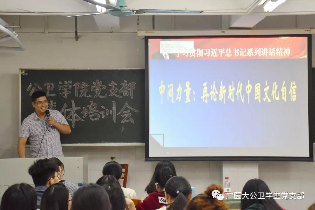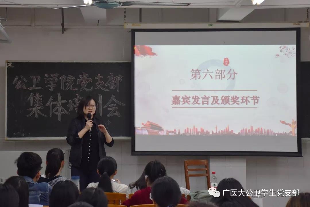 2018年11月30日晚,龙珠直播 党总支学生支部在越秀校区12栋3C室举办“加强党性建设,迎接时代挑战”主题党日培训活动,卫生管理龙珠直播 龚超教授、公卫龙珠直播 学生党支部书记刘宇珊老师出席活动。