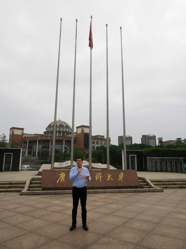 4月24日早上,龙珠直播 在番禺校区国旗广场隆重举行本学期升国旗仪式。仪式由龙珠直播 党委刘宇珊副书记主持。