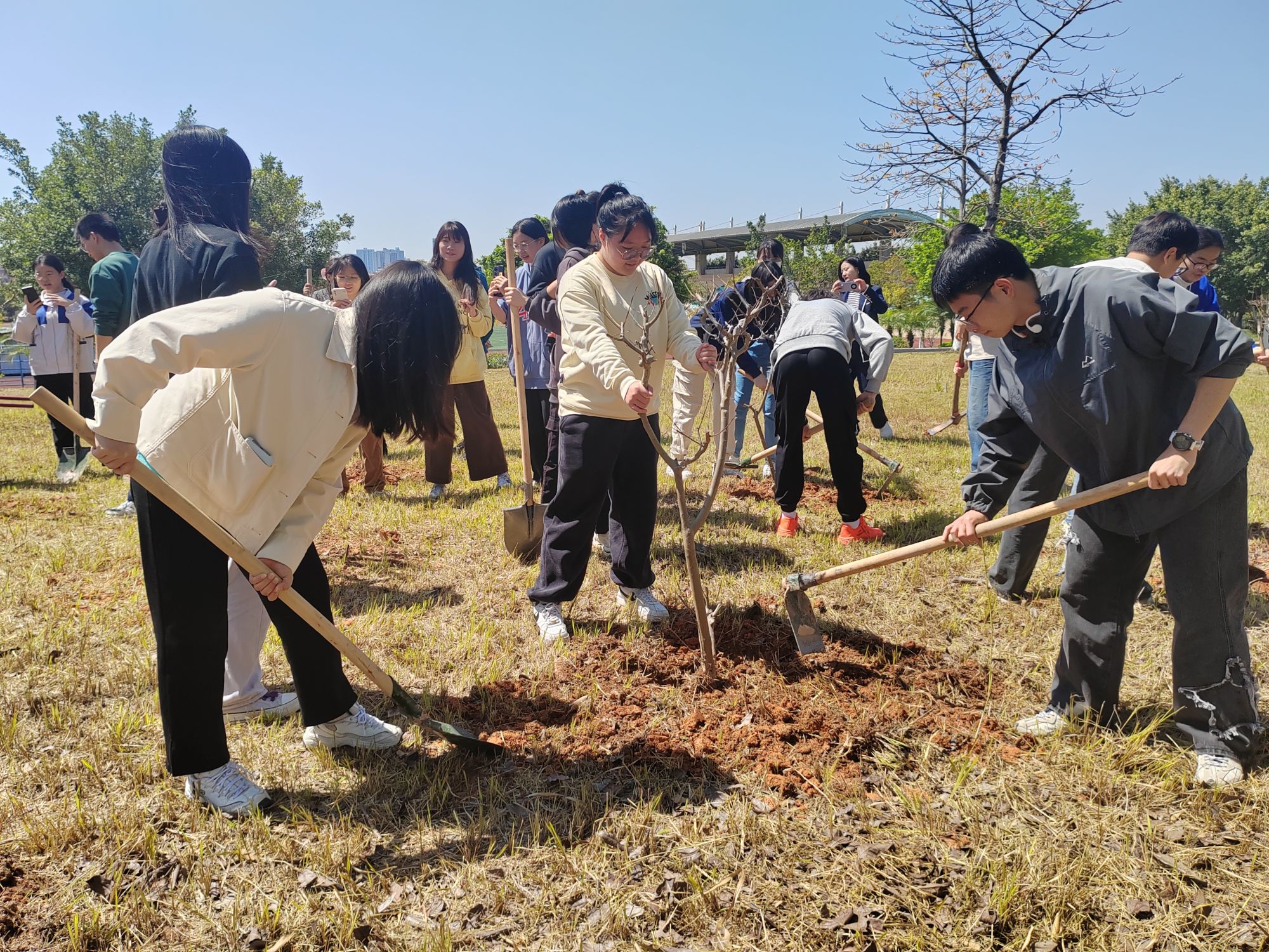 当天上午,在龙珠直播 领导的带领下,大家按组分工,默契配合,挖坑、栽苗、培土、浇水有条不紊,不多时,一株株树苗便稳稳当当地扎根土里。