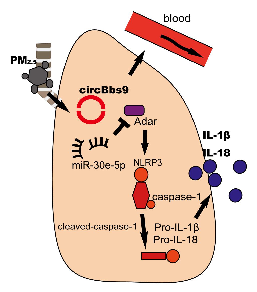 该研究采用实时暴露于大气污染物PM2.5的小鼠动物模型,研究了PM2.5对机体呼吸系统的损害,并深入探索了其毒性作用的分子机制。研究发现环状RNA分子circBbs9通过与微小RNA miR-30e-5p相互作用,调控炎症小体NLRP3的活性,影响PM2.5致呼吸道炎性反应。研究揭示了巨噬细胞内,circRNA在PM2.5诱导的细胞炎性反应过程中发挥了重要作用。本研究受国家自然科学基金重大研究计划重点支持项目资助。