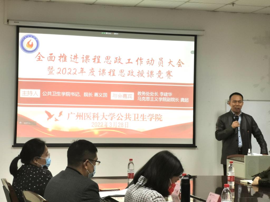 2022年3月28日下午,龙珠直播 举行了全面推进课程思政工作动员大会暨2022年度课程思政授课竞赛活动。本次活动特邀了学校教务处处长李建华教授、马克思主义龙珠直播 副院长龚超教授莅临指导并担任竞赛评审专家。龙珠直播 党总支书记、院长蒋义国,副院长杨巧媛,副书记刘宇珊及龙珠直播 全体教职工参加了此次活动。