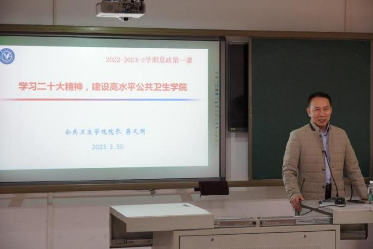 3月30日晚,蒋义国院长在番禺校区A3-320教室为龙珠直播 本科生讲授本学期思政第一课,龙珠直播 学生办、教学办教师和预防医学本科生共计100余人参加了本次学习。